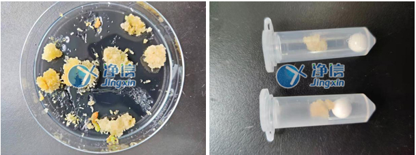 實驗目的:愈傷組織(callus)是指原植物體的局部受到創傷刺激后,在傷口表面新生的組織。它由活的薄壁細胞組成,可起源于植物體任何器官內各種組織的活細胞。本次實驗對象為愈傷組織,要求磨細,而且凍液氮磨,后續用來提RNA。