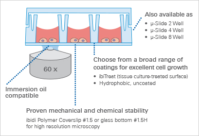 *ibiTreat (tissue culture-treated) surface for optimal cell adhesion