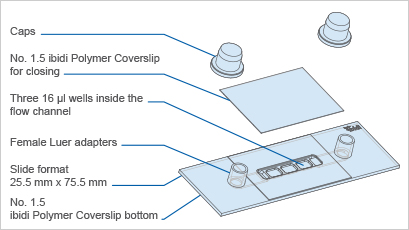 * Contains Luer adapters for easy tube and pump connection (e.g., to the ibidi Pump System)