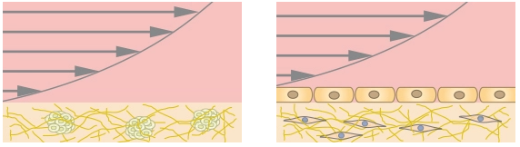 The μ-Slide I Luer 3D allows for creating an endothelial barrier without the need of an artificial filter membrane. Endothelial cells can be seeded on a suitable gel matrix, such as Collagen Type I, Rat Tail. After connecting the slide to a pump and applying defined shear stress, an in vivo-like endothelial barrier assay is created. This model simulates blood vessels on a soft ECM matrix instead of using a hard filter membrane.