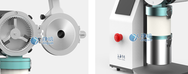 The cross-percussion mill JXQJ-500 realizes the crushing process through percussion, impact and shear effects. The crushed sample passes through the feeding funnel and directly enters the center of the crushing chamber. The sample captured by the cross-beating rotor is crushed between the impact crushing plate of the rotary knife and the tooth-shaped crushing insert. Once the sample particle size is smaller than the sieve aperture, they enter the receiving container. The percussion rotor sucks in a large amount of air through the feeding funnel channel, thereby accelerating the speed of the crushed sample leaving the crushing chamber. The subsequent connected filter system can recover the fine particles in the airflow.