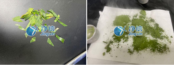 將樟樹葉片剪小段后放入若干ML研磨罐中,加入特定規(guī)格的研磨介質(zhì),然后把研磨罐放入液氮眾泡制幾分鐘,泡制至超低溫后放進(jìn)上海凈信多樣品研磨儀內(nèi),設(shè)置好研磨儀工作時(shí)間和頻率,啟動設(shè)備。
