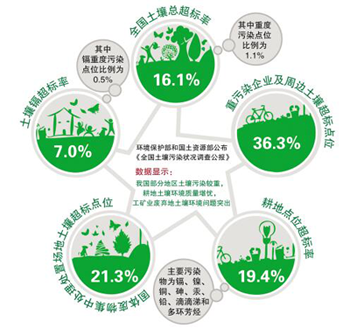 土壤污染中以重金屬污染比較突出,主要是由于重金屬不能為土壤微生物所分解,而易于積累,轉化為毒性更大的甲基化合物,甚至有的通過食物鏈在人體內蓄積,嚴重危害人體健康。土壤重金屬污染的危害不僅僅取決于重金屬在土壤中的總量,還取決于其存在形態和各形態所占的比例,其中重金屬元素以水溶態、交換態的活性毒性大,殘存態的活性毒性小。