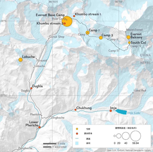 報道稱,“污染嚴重的樣本來自位于尼泊爾境內的珠峰大本營,那里是珠峰上人類活動較集中的地方。每公升積雪含有79個微粒。取樣地點位于海拔8440米處,即位于珠峰峰頂下方408米處,該樣本中每公升積雪含有12個塑料微粒。在珠穆朗瑪峰上發(fā)現的微塑料大都源自合成纖維,包括聚酯纖維和丙烯酸纖維,系制作登山者衣服和裝備所用的材料。”