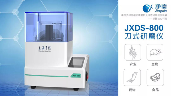 采用上海凈信刀式研磨儀JXDS-800 對樣品進行預(yù)處理, 可以進一步提高樣品的均一化程度, 更好地保留分析目標化合物, 為食品樣品中待測組分的提取、凈化、濃縮, 進行定量、定性分析檢測做好充分準備, 保證結(jié)果的準確性和重現(xiàn)性。