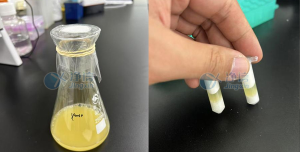 2、取適量酵母菌液、同體積的0.5mm,1mm混合研磨珠一起放入2ml離心管中,蓋上蓋子。