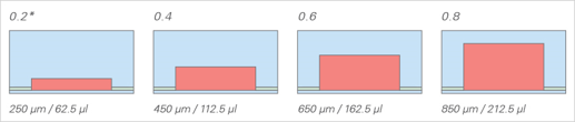由于粘合層的存在,μ-Slide I Luer玻璃底部的通道高度比μ-Slide I Luer增加了50μm。