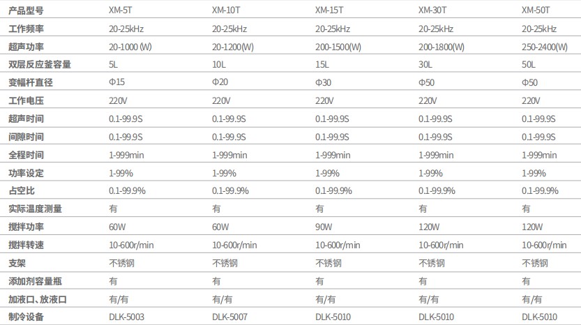 超聲波提取機XM-T系列是由超聲波細胞粉碎機、節能型智能恒溫槽和雙層玻璃反應釜三大部分組成。該儀器吸收了國外最新技術,結合微電腦控制、進頻測溫、保護等軟硬件技術,是一款廣泛用于生物化學、微生物學、藥物化學、表面化學、物理學、農學、醫學、制藥等領域的超聲提取儀器。